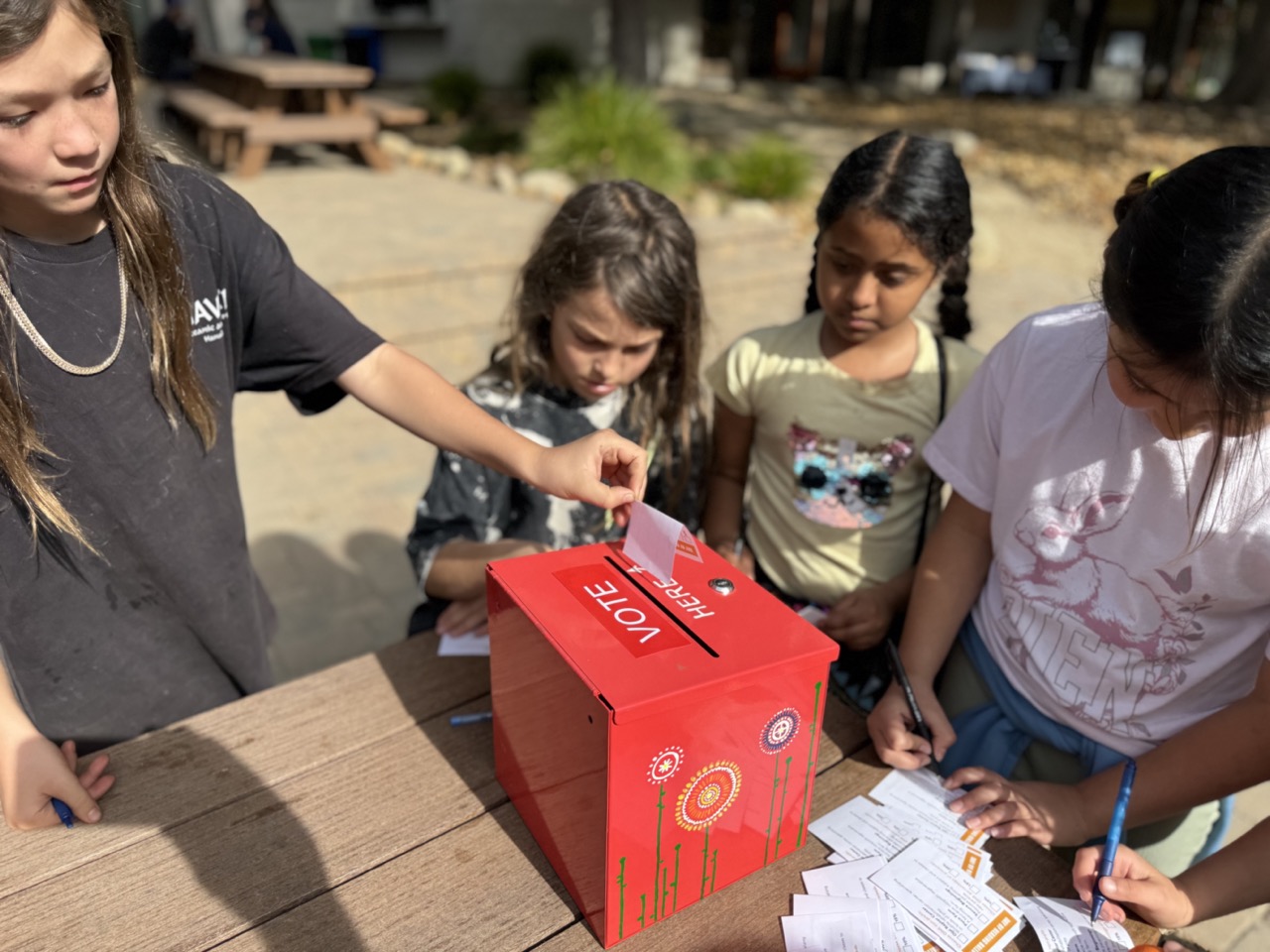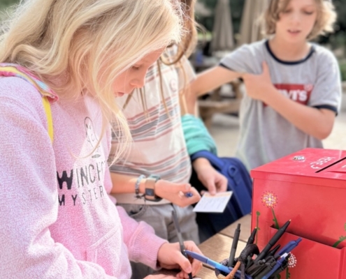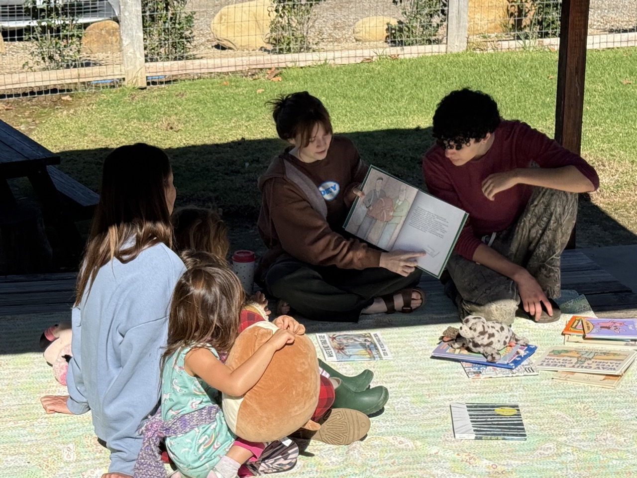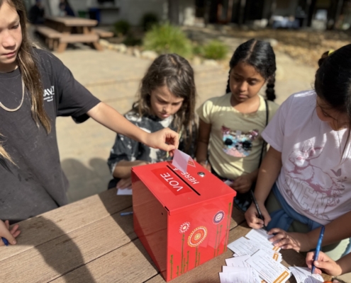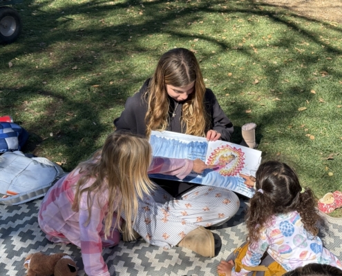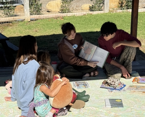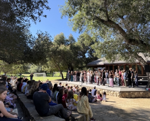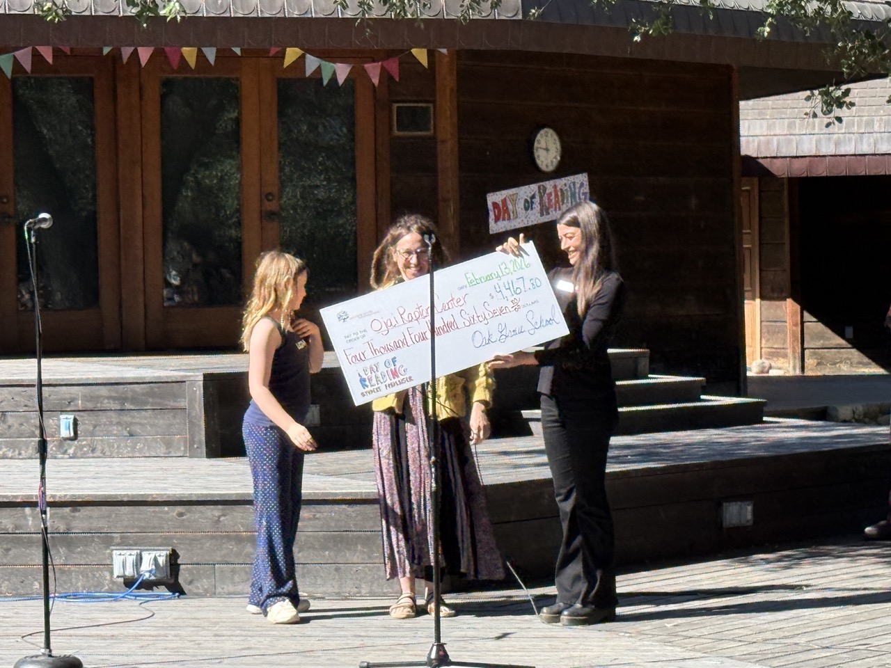 A new and creative fundraising initiative in the high school this year, the morning began with cheerful singing candy-grams. They visited faculty and staff across campus, kicking off the day with heartfelt messages and delightful songs. The morning assembly featured the entire high school, singing “Stand By Me” a cappella before a Day of Reading check for over $4000 was presented to Jaclyn DeSantis, Ojai Raptor Center‘s Education Program Manager. Throughout the day, older students teamed up with their younger reading buddies to share some favorite stories and dive into exciting books together.